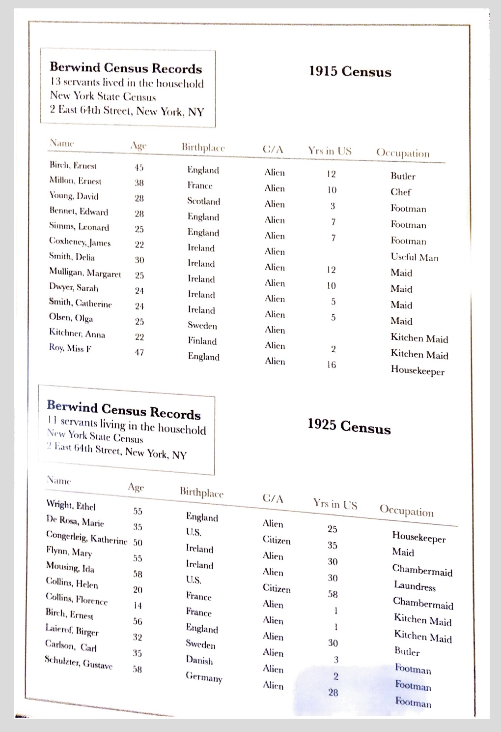 The Berwinds resided the rest of the year in NY. The servants would pack up and serve at the NY for the rest of the year.