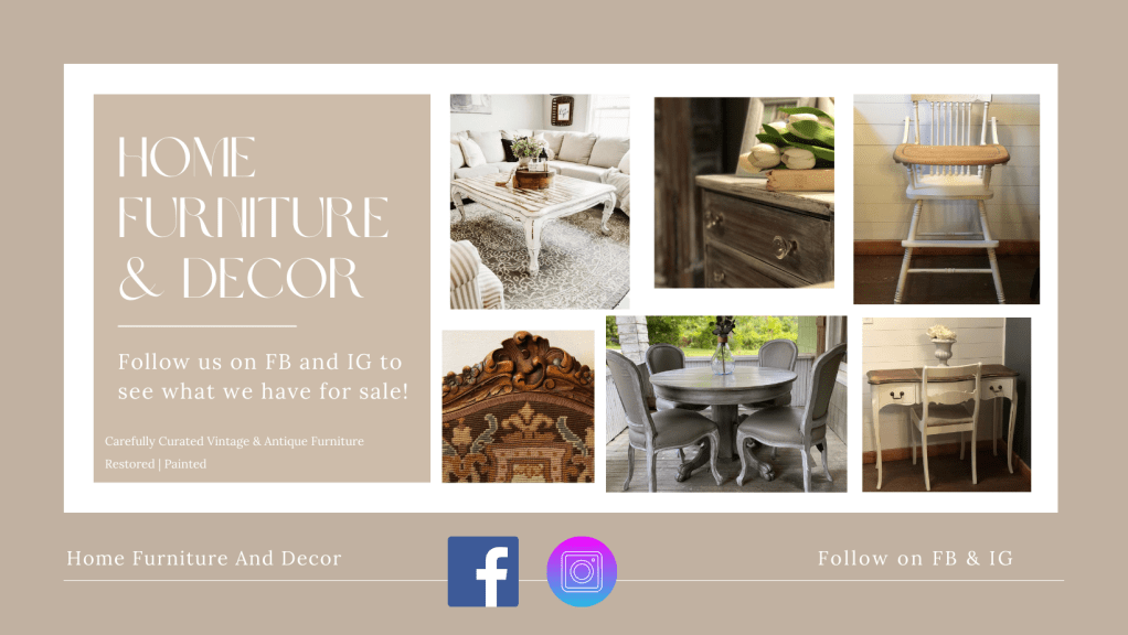 Follow us on Facebook and Instagram to see current inventory! We post pictures and prices of our furniture and decor on social media.